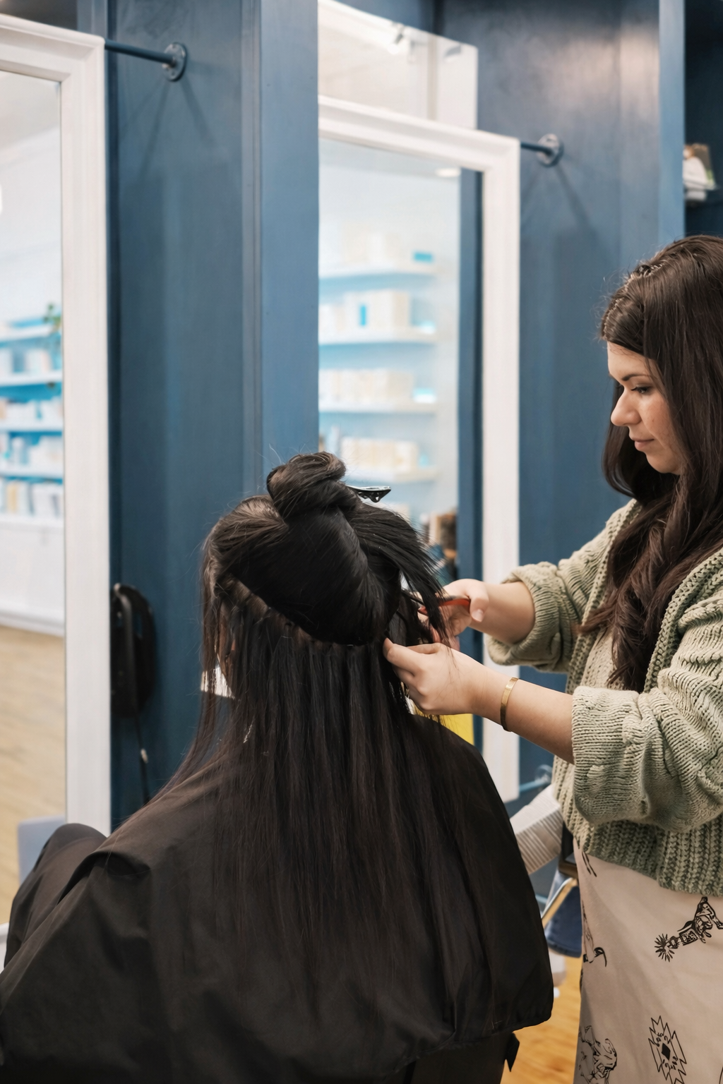 Every extension transformation begins with a personalized consultation. During this appointment, we will discuss your hair goals, evaluate your natural hair, and determine the best method for you.